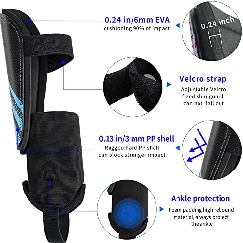 Feature | ⚽ 【CONTOURED COMFORT 4MM EVA】EVA padded guards absorb shock and distribute impact. Foam backing offers an additional layer of shock resistance to keep you supported. Reliable and durable, the contoured foam backing is what sets these guards apart, making them so comfortable your kids might even forget they’re wearing them. |